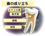 歯の組織には、外側にエナメル質があり、その中に象牙質があります。Structure of a tooth 歯の中心には歯髄があります。これは歯髄腔のなかにあり、神経組織から成り立つ組織の事です。
