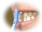 スーパーフロスは、硬い素材でできていて、緊密なエリアのプラークを取り除くことができます。スーパーフロスをブリッジの下に差し込み、歯の側面とブリッジの下を掃除します。